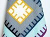 This elegant quilt uses subtle-coloured shot solid fabrics in a design that mimics a blanket stitch pattern