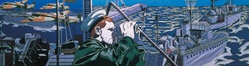 Undeterred, he decided to go it alone with the project, and in 1968 commissioned young artist Sandra Lawrence to produce some virgin artwork. The idea was that Lawrence would initially produce a thumbnail sketch design for each of a series of panels; these would be put in front of an assembled advisory panel of D-Day experts, comprising Admiral Sir Charles Madden, General Sir Charles Jones and Air Chief Marshal Sir Donald Evans. Once each sketch had been approved, Sandra would go away and make an 8 x 3ft painting, this constituting a full-size template for each panel.