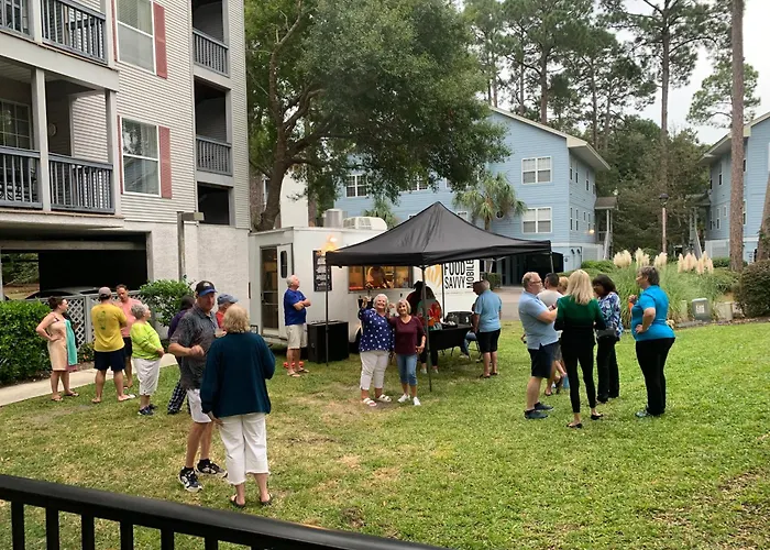 The neighbourhood features restaurants, including Island Grill & Deli, which is just around the corner from the Beach Side Condo At Hilton Head Resort Villas.