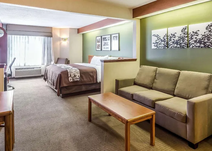 Offering an indoor swimming pool, the 2-star Sleep Inn & Suites Bay View Acme - Traverse City is nestled in the Acme district, just an 8-minute walk from Feast of Victory Lutheran Church. The highlights of the hotel include a vending machine and a lift, it also offers Wi-Fi in public areas.
