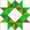 - Three 2 3/4in squares of mid green cut into four quarter square triangles each, for a total of ten triangles (Discard two)